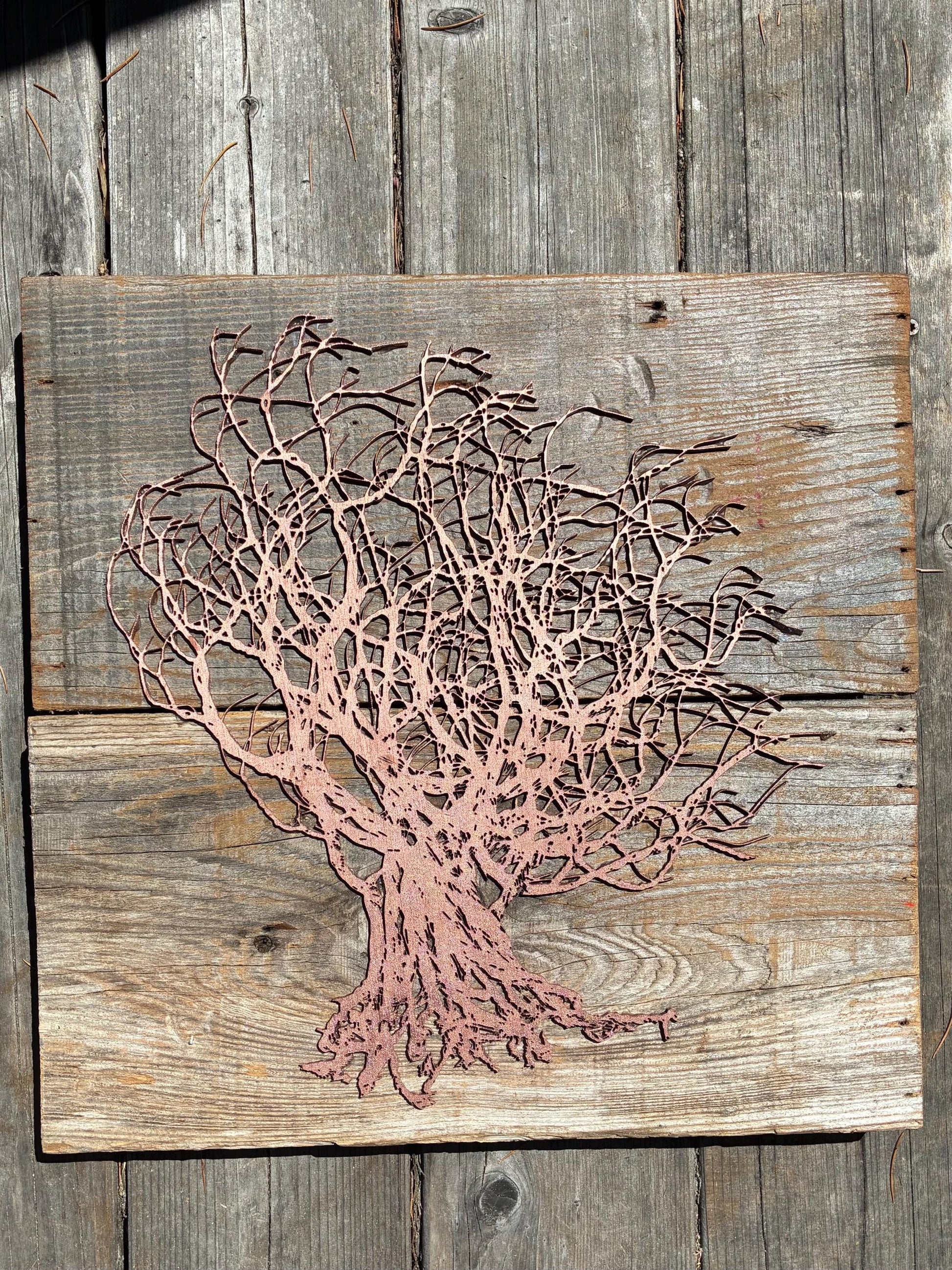 Wall Copper Color Tree Art on Wooden Backing - Light Wood Tones FREE SHIPPING